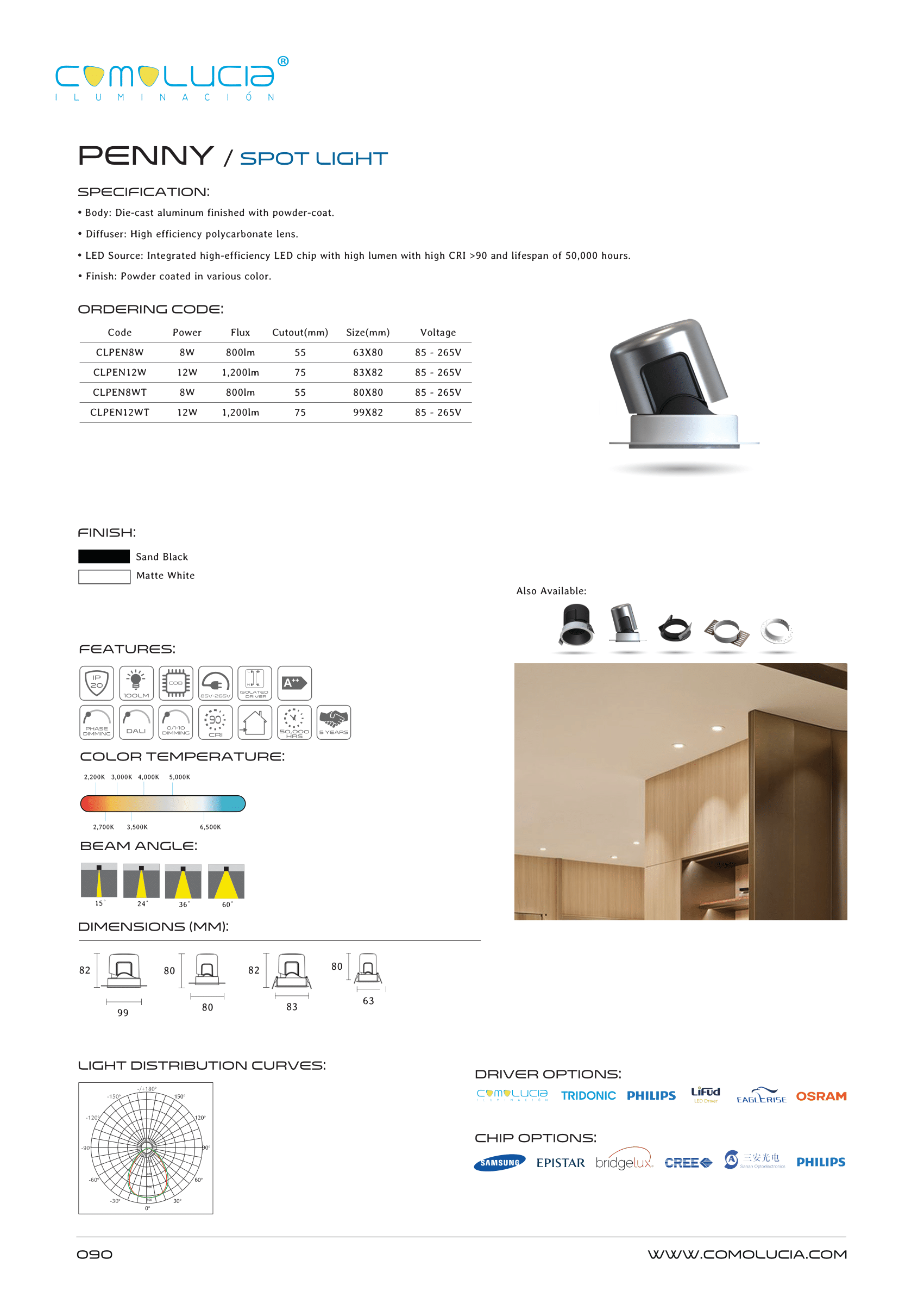- LED Source: Integrated high-efficiency LED chip with high lumen with high CRI >90 and lifespan of 50,000 hours.