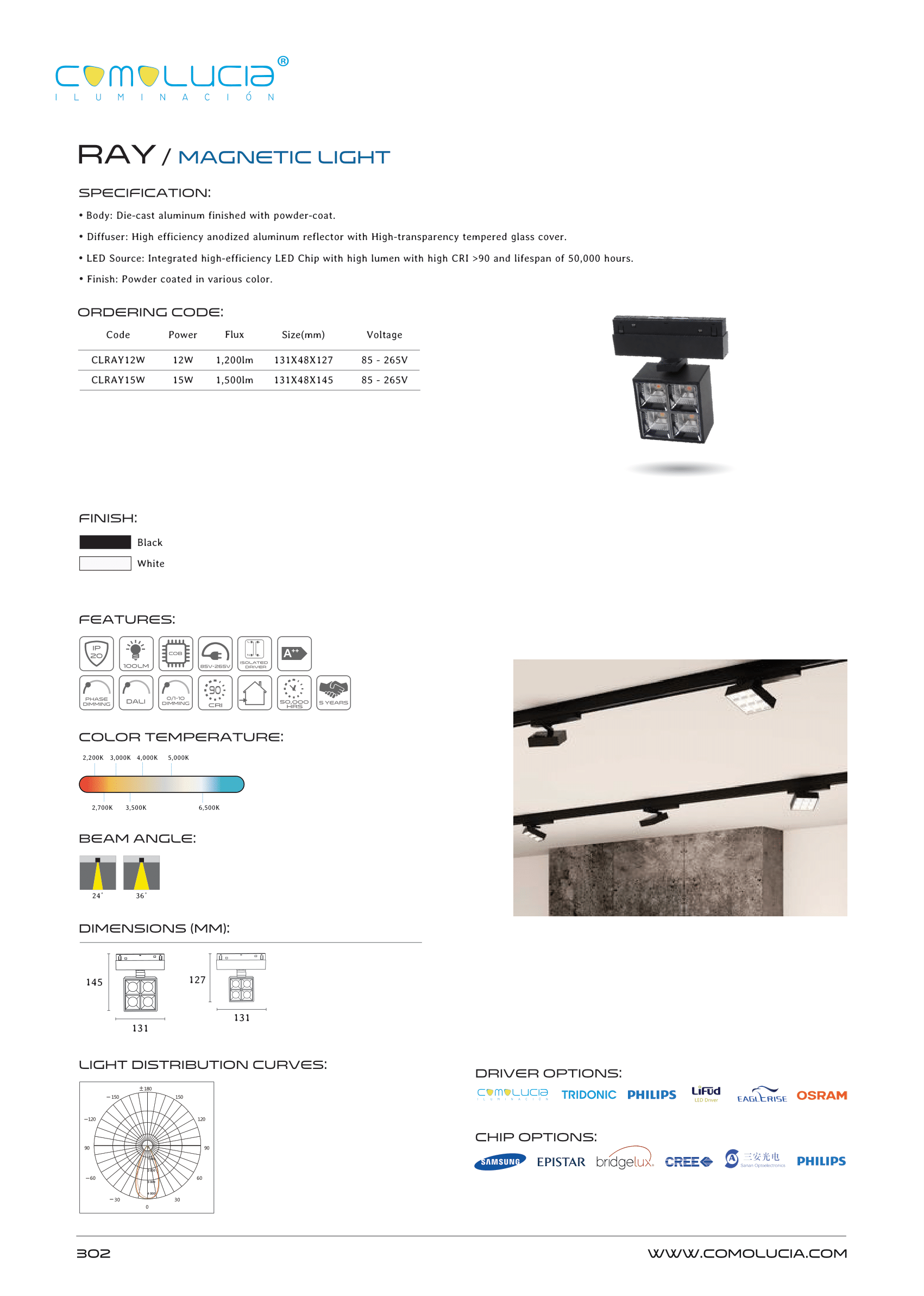 - Diffuser: High efficiency anodized aluminum reflector with High-transparency tempered glass cover.