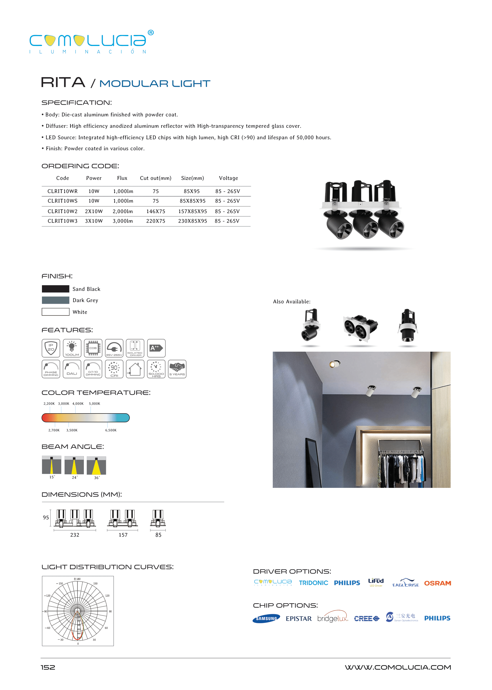 - LED Source: Integrated high-efficiency LED chips with high lumen, high CRI (>90) and lifespan of 50,000 hours.