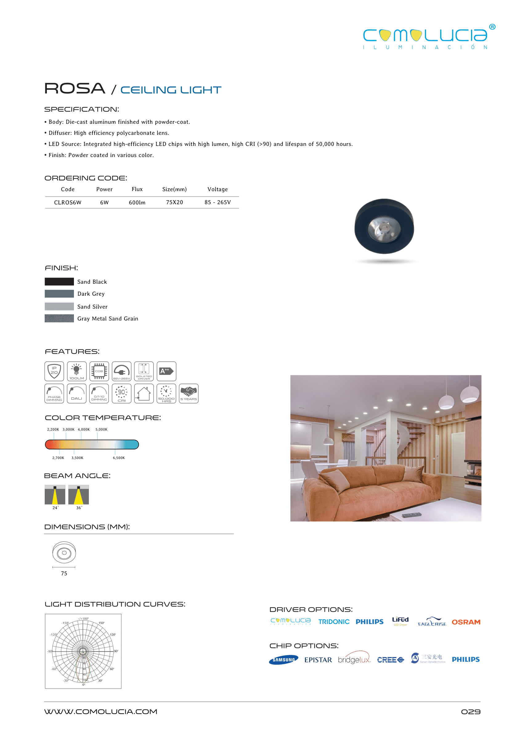 - LED Source: Integrated high-efficiency LED chips with high lumen, high CRI (>90) and lifespan of 50,000 hours.