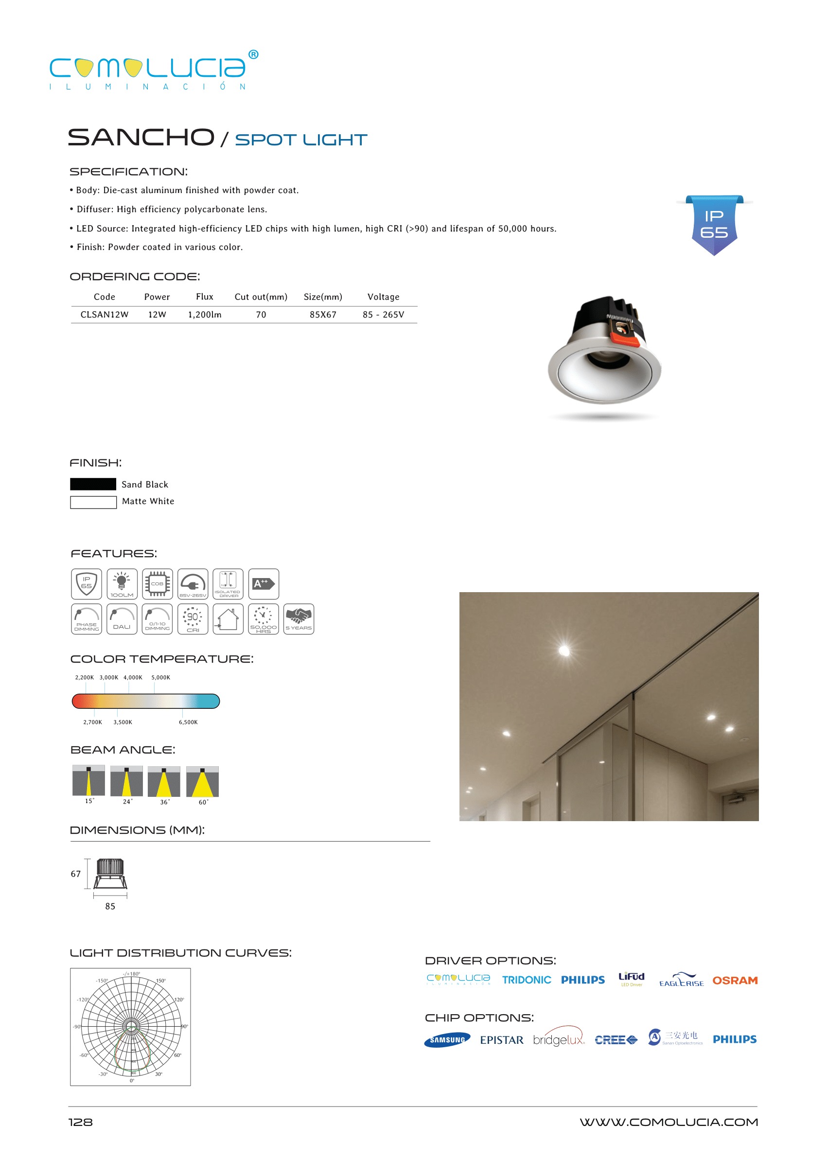 - LED Source: Integrated high-efficiency LED chips with high lumen, high CRI (>90) and lifespan of 50,000 hours.