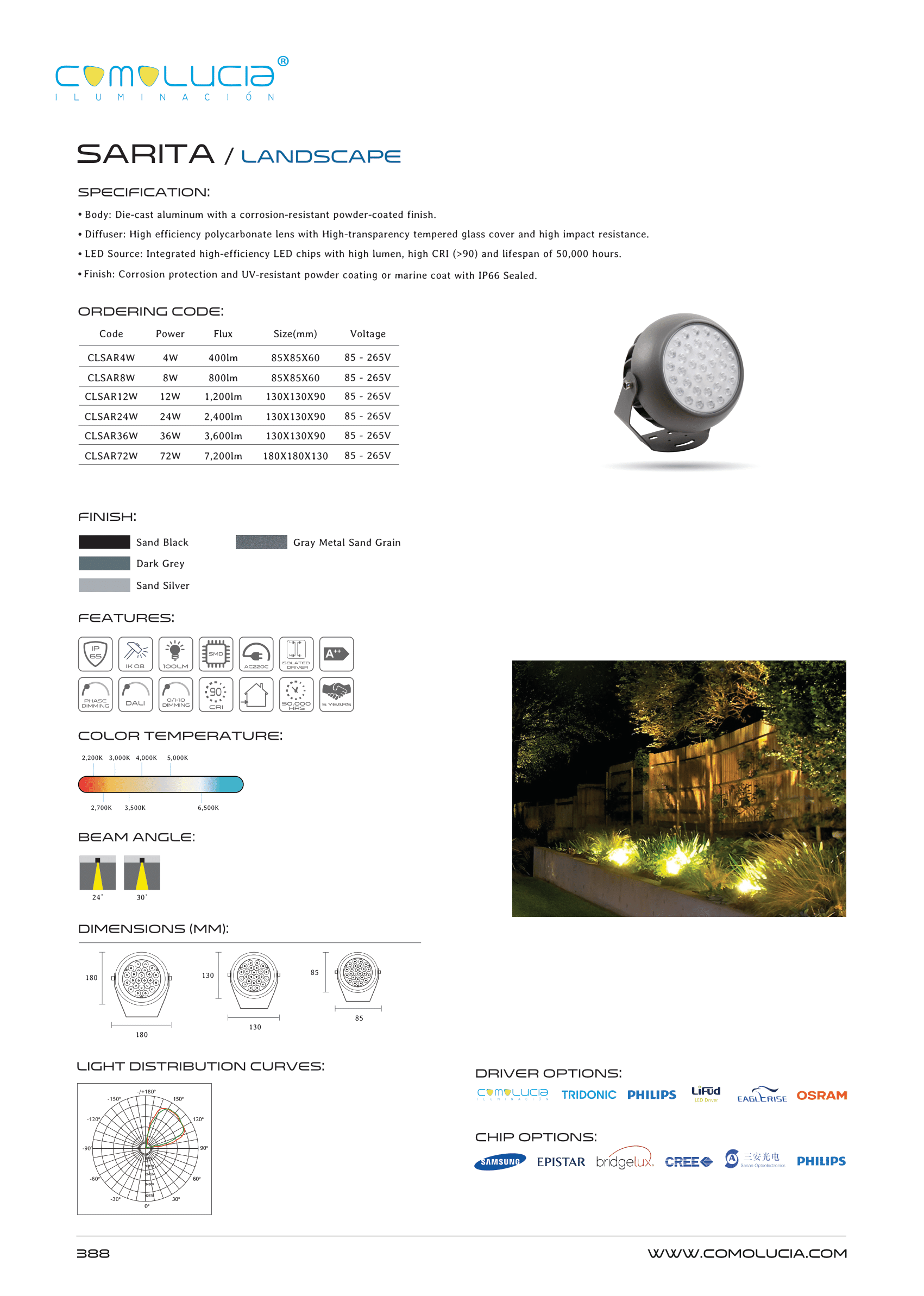 - LED Source: Integrated high-efficiency LED chips with high lumen, high CRI (>90) and lifespan of 50,000 hours.