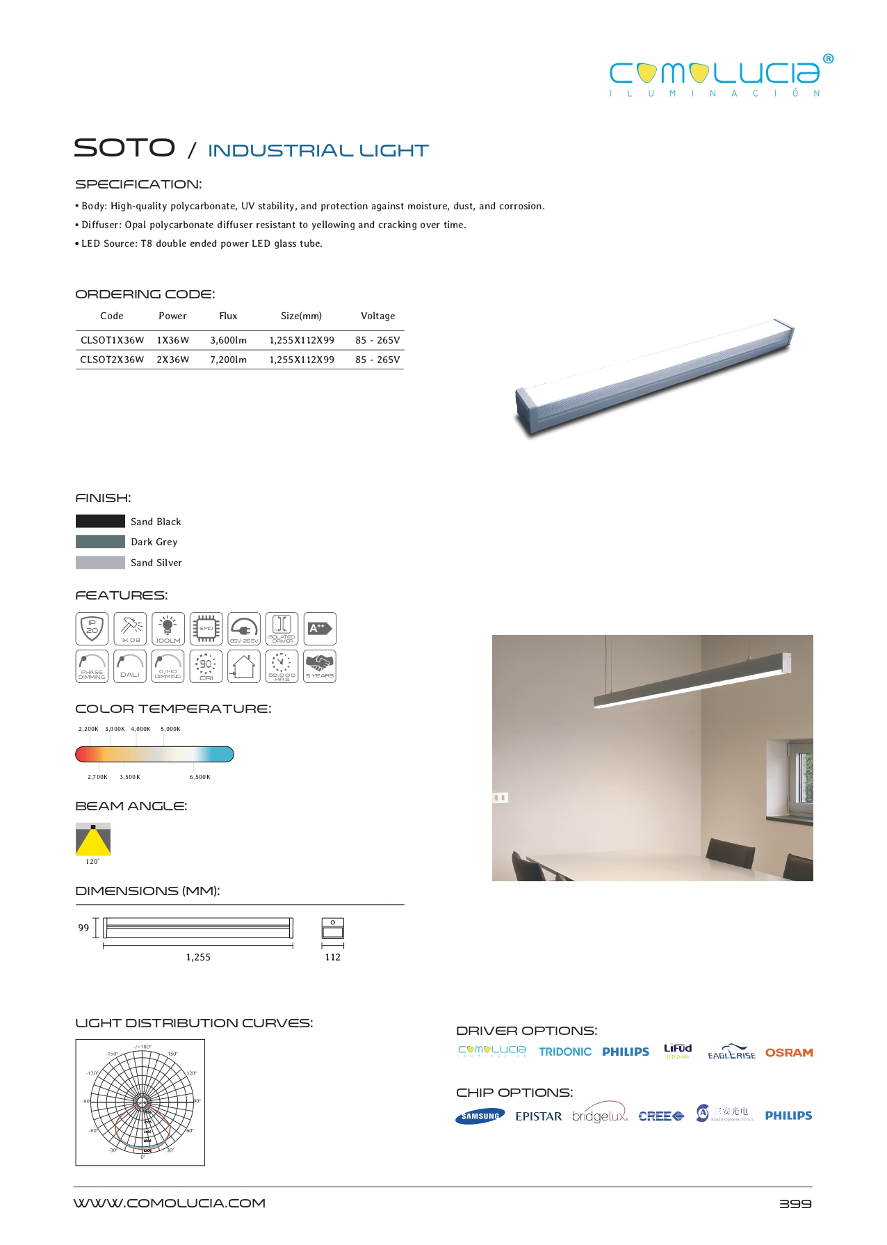 - Diffuser: Opal polycarbonate diffuser resistant to yellowing and cracking over time.