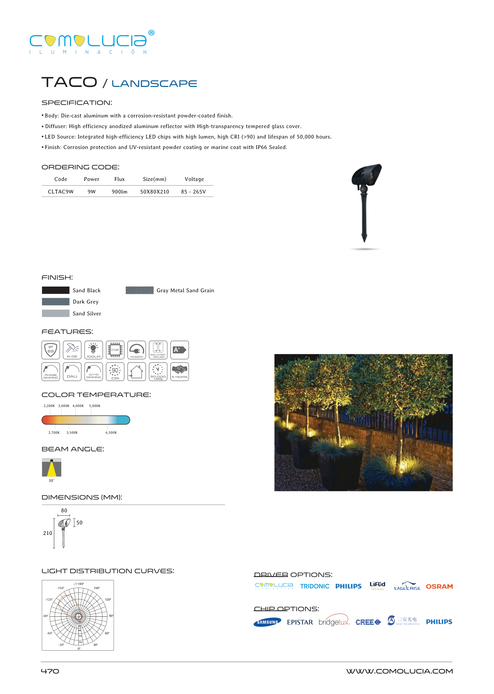 - Diffuser: High efficiency anodized aluminum reflector with High-transparency tempered glass cover.