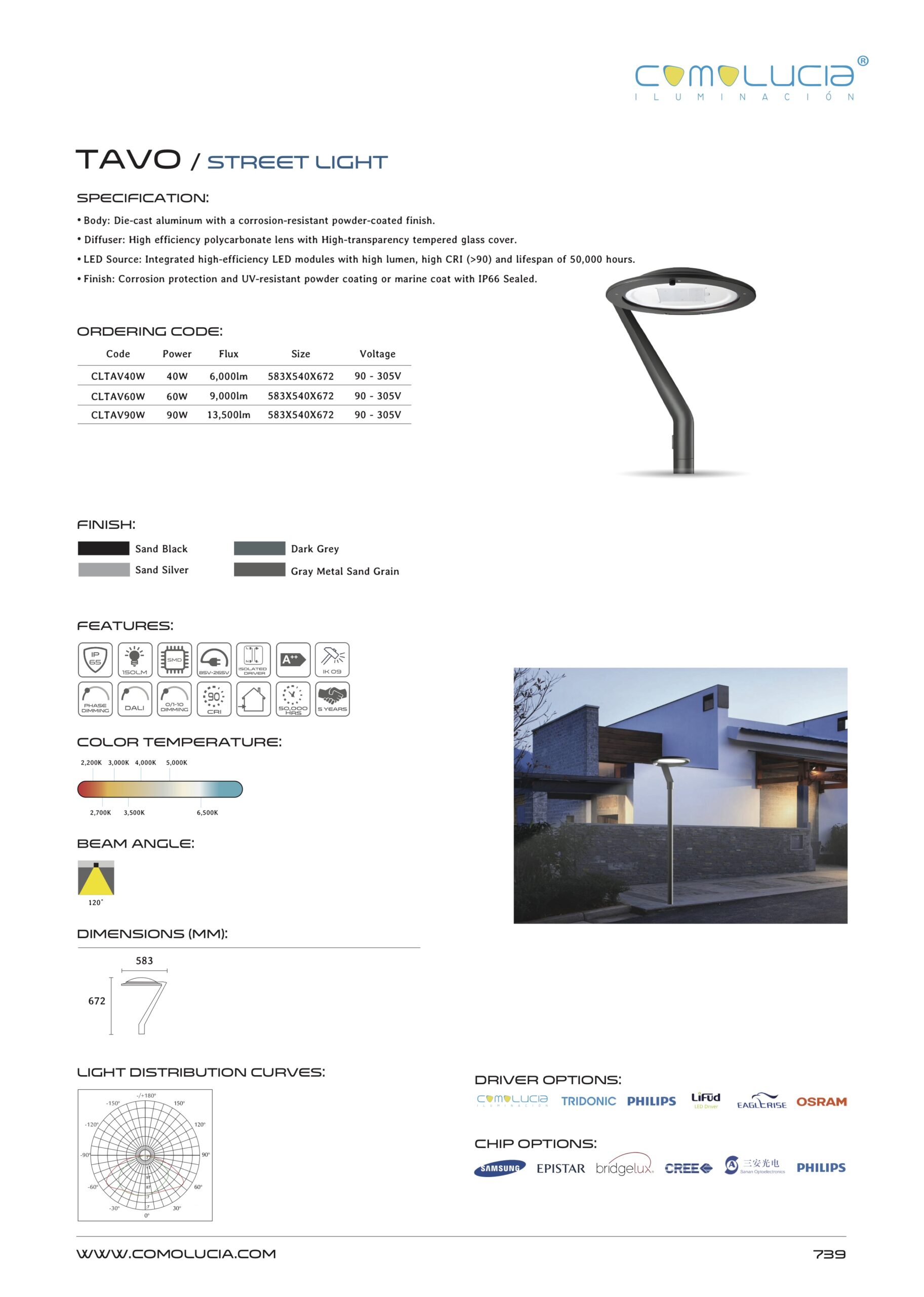 - LED Source: Integrated high-efficiency LED modules with high lumen, high CRI (>90) and lifespan of 50,000 hours.