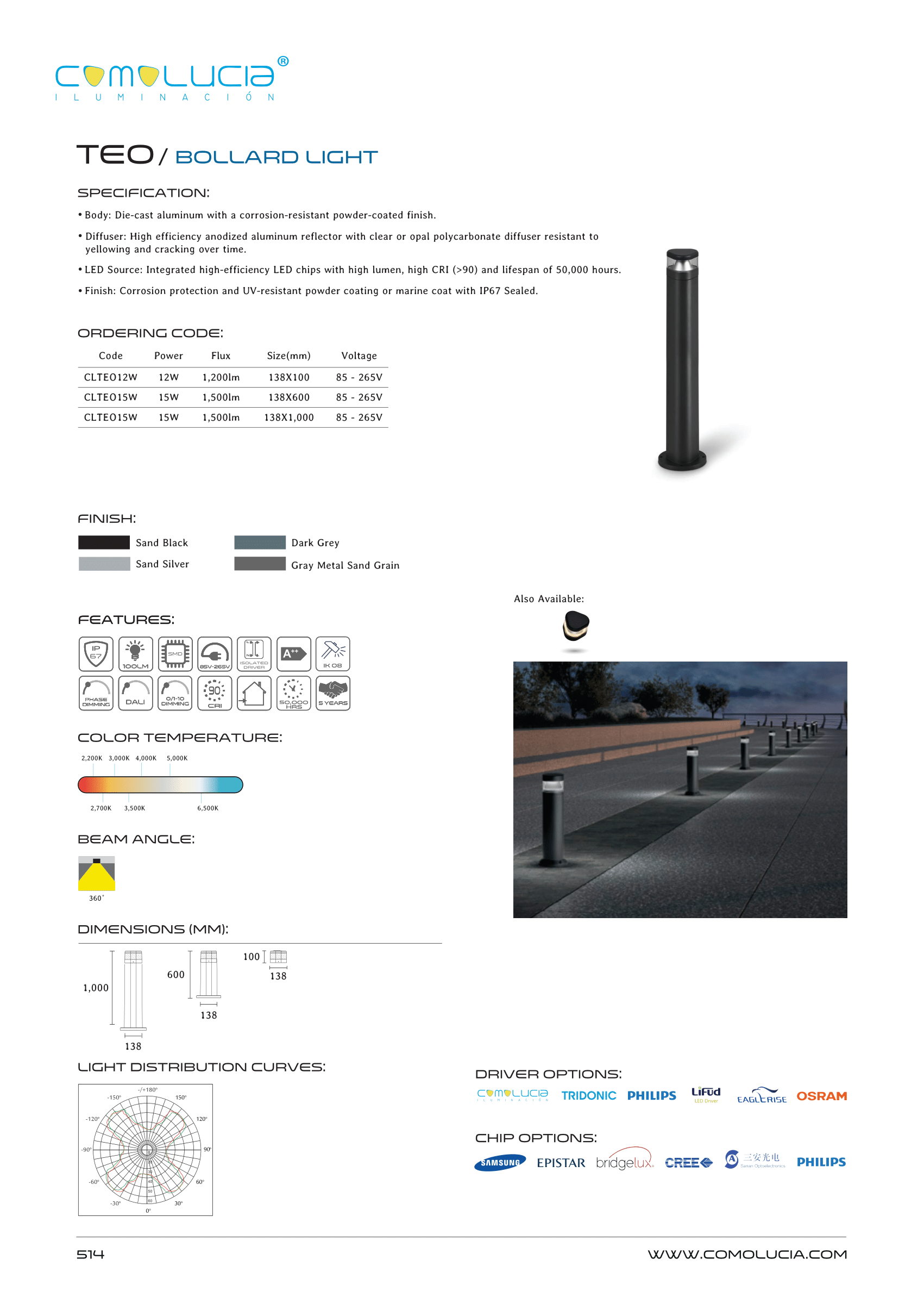 - LED Source: Integrated high-efficiency LED chips with high lumen, high CRI (>90) and lifespan of 50,000 hours.