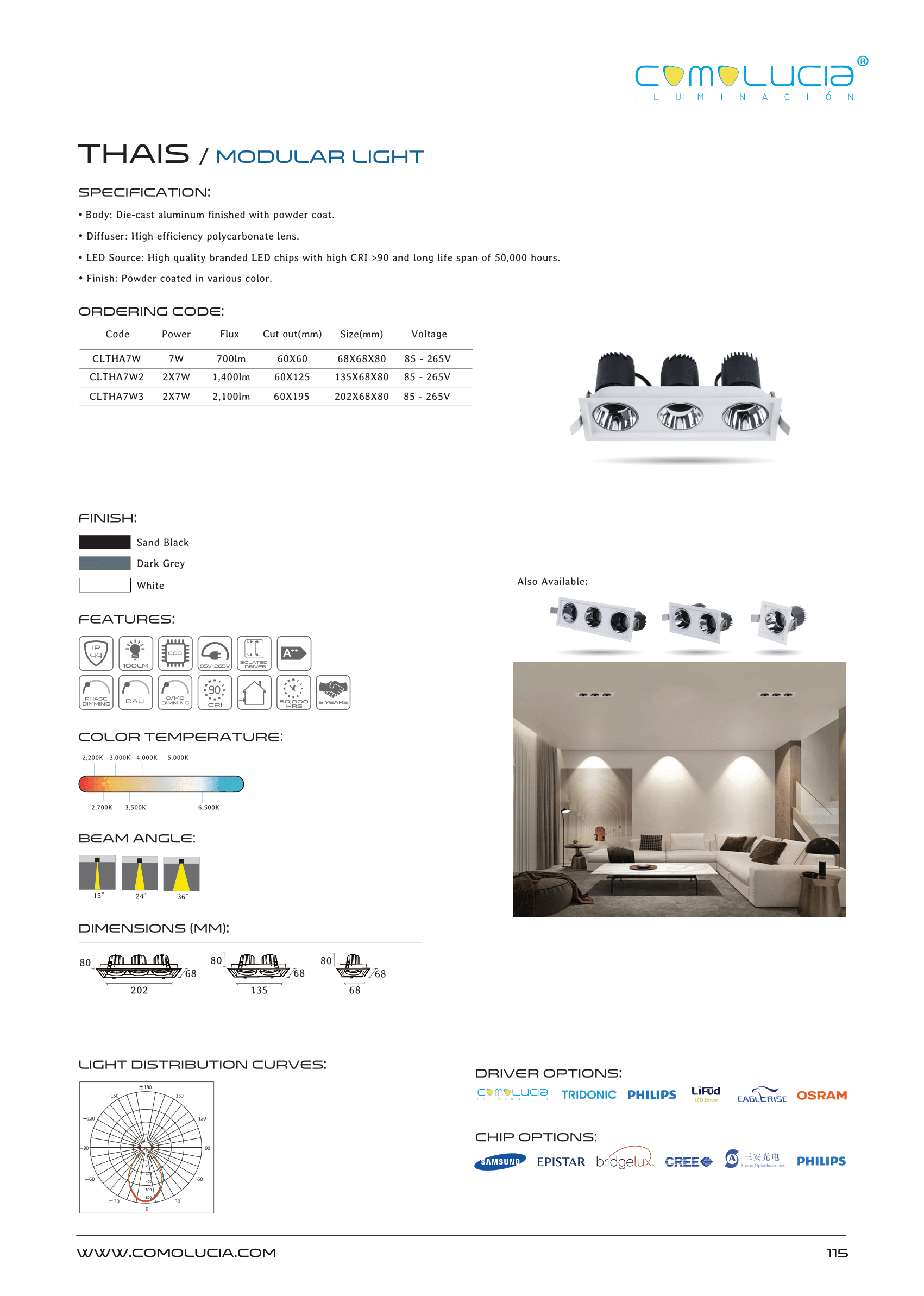 - LED Source: High quality branded LED chips with high CRI >90 and long life span of 50,000 hours.