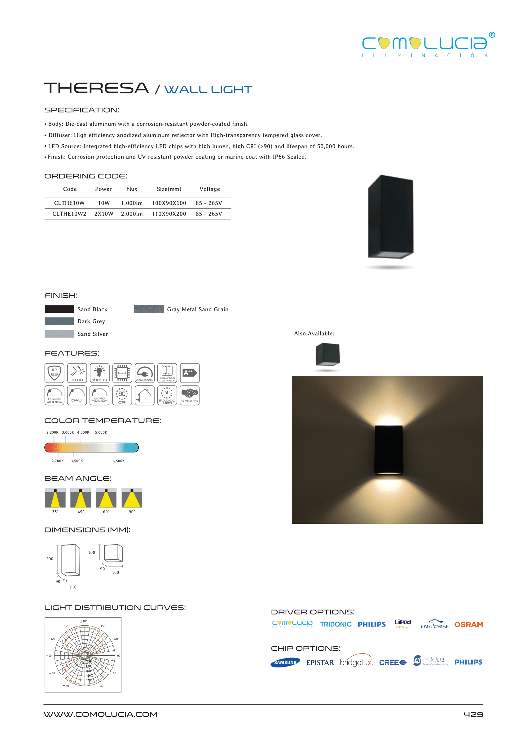 - Diffuser: High efficiency anodized aluminum reflector with High-transparency tempered glass cover.