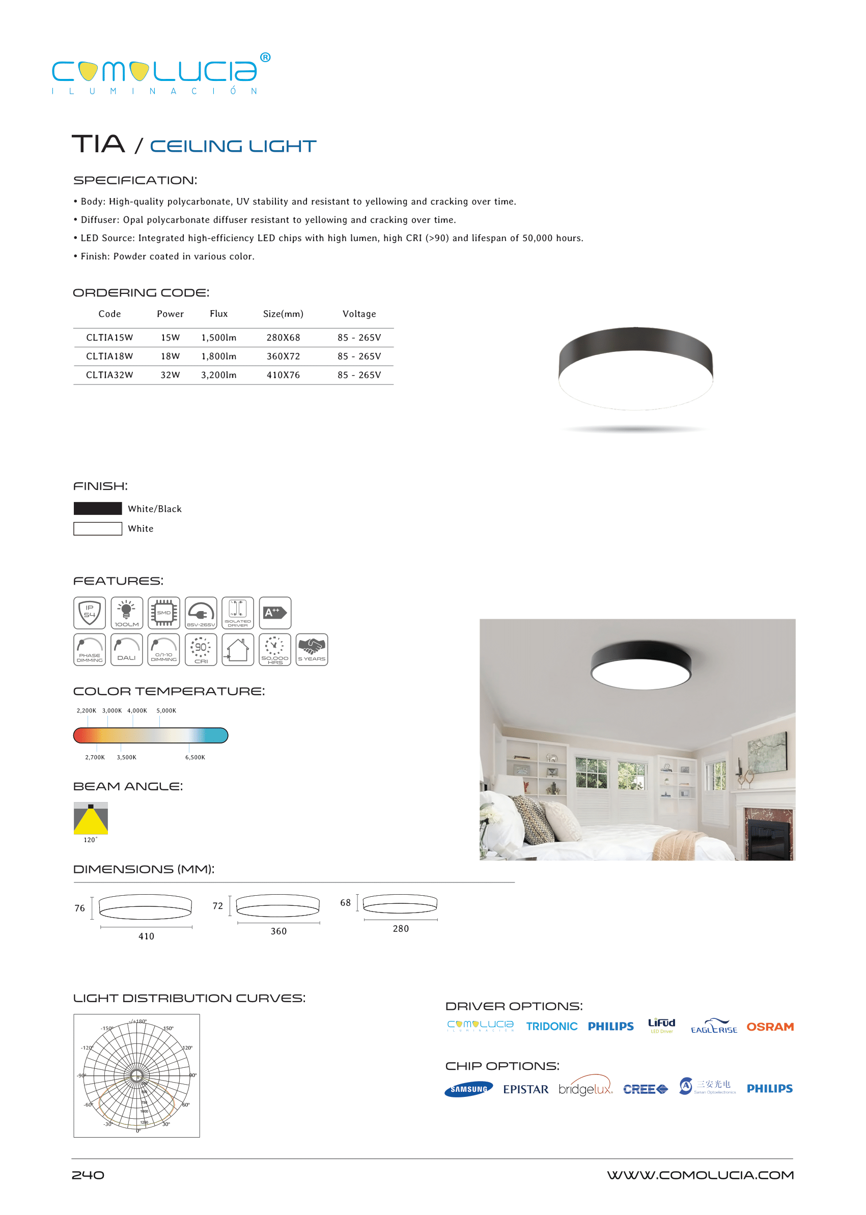 - LED Source: Integrated high-efficiency LED chips with high lumen, high CRI (>90) and lifespan of 50,000 hours.