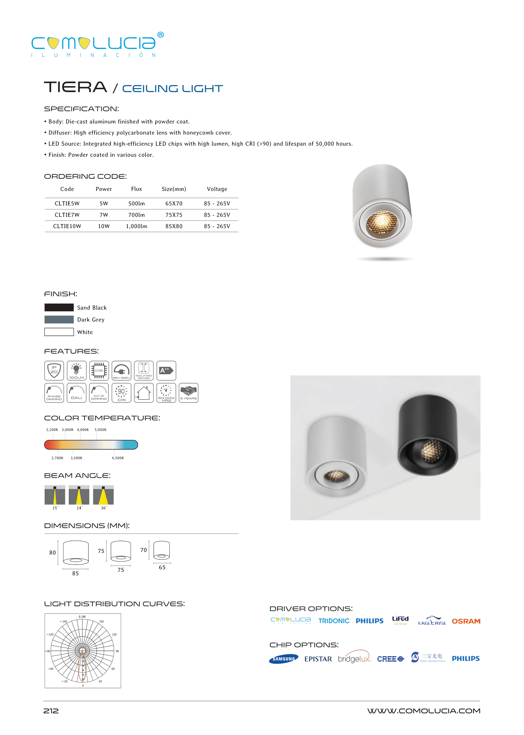 - LED Source: Integrated high-efficiency LED chips with high lumen, high CRI (>90) and lifespan of 50,000 hours.