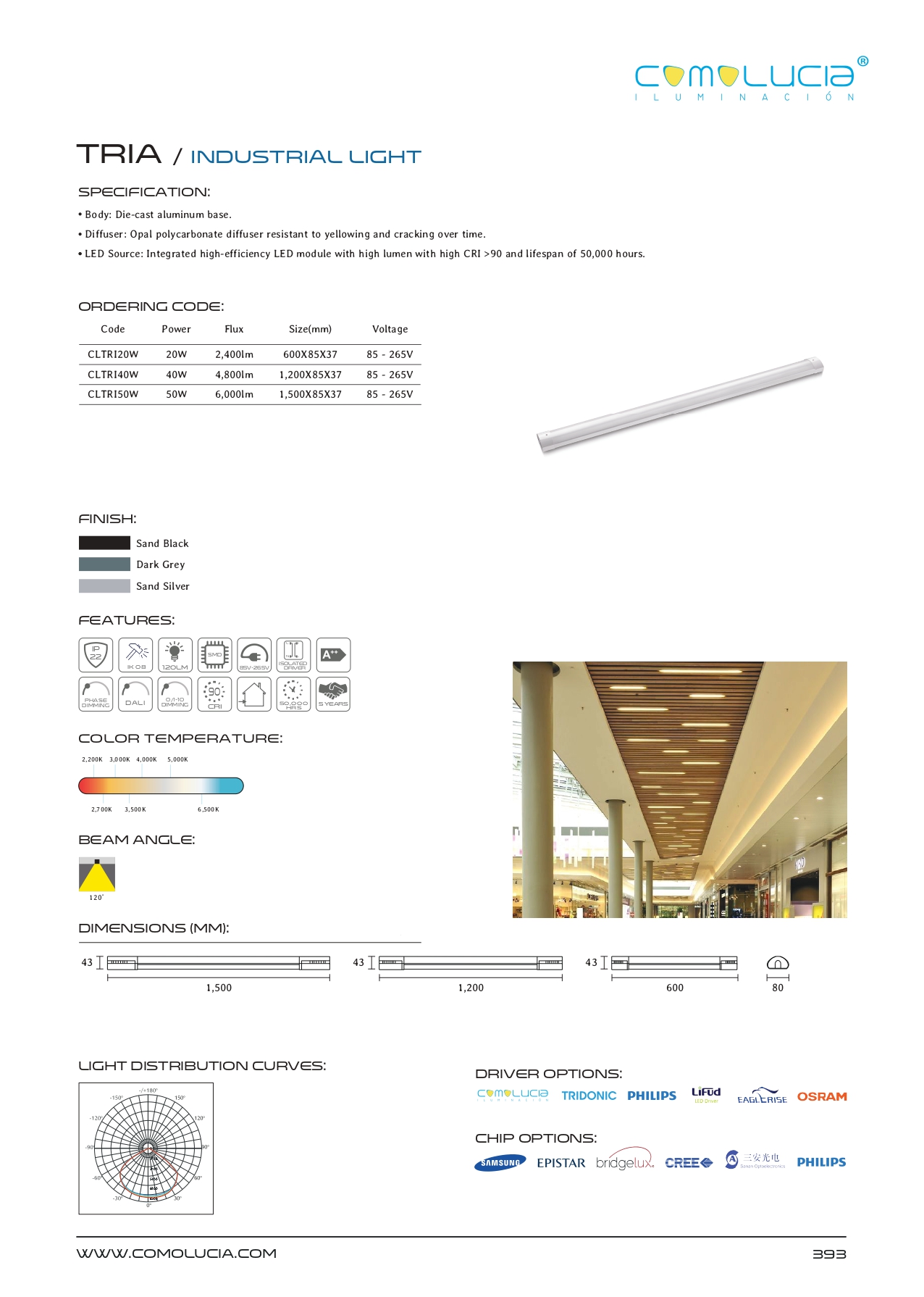 - LED Source: Integrated high-efficiency LED module with high lumen with high CRI >90 and lifespan of 50,000 hours.
