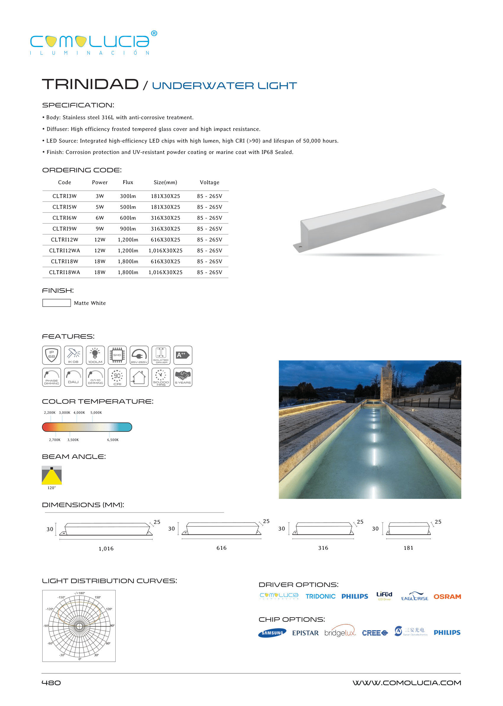 - Finish: Corrosion protection and UV-resistant powder coating or marine coat with IP68 Sealed.