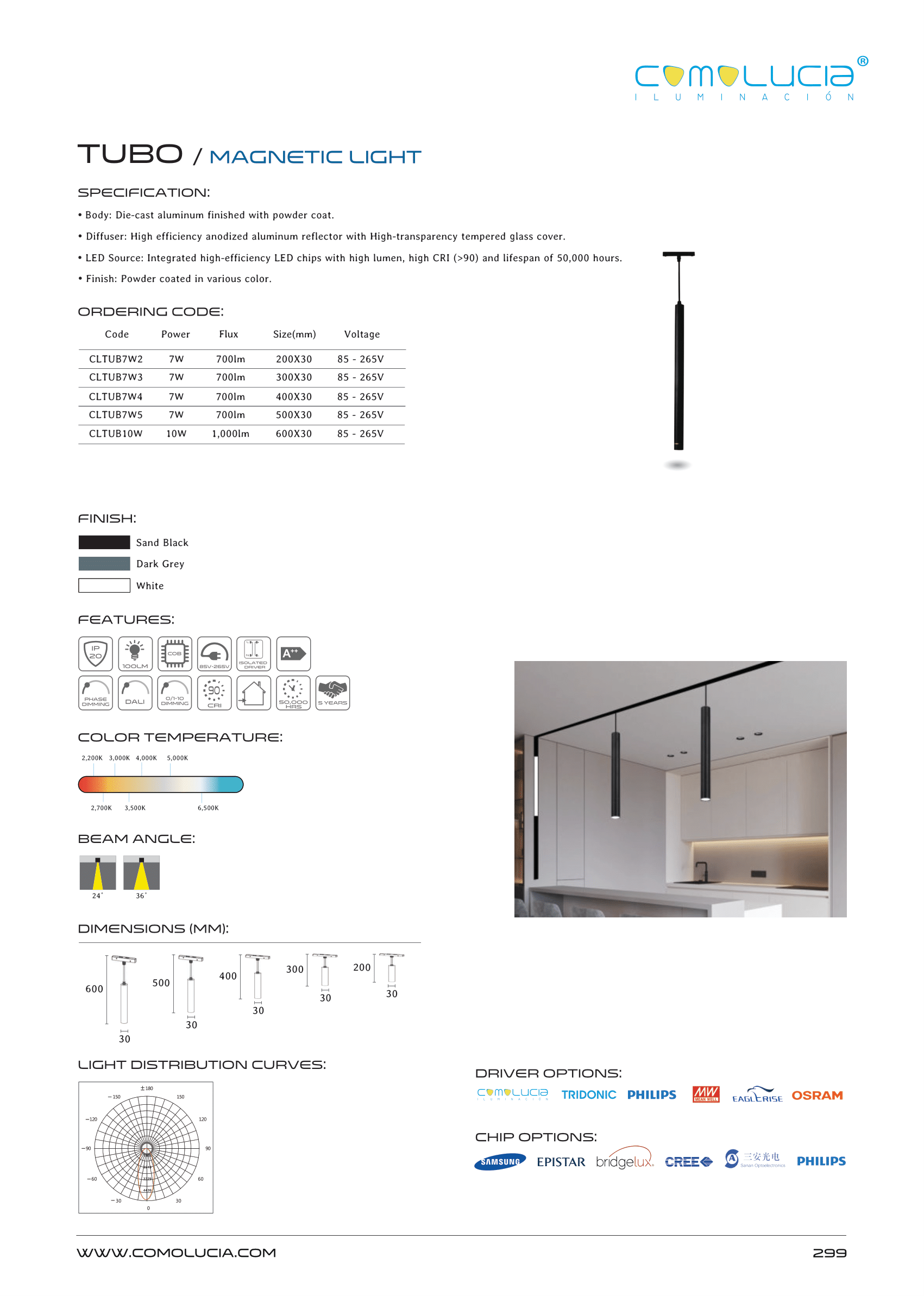 - LED Source: Integrated high-efficiency LED chips with high lumen, high CRI (>90) and lifespan of 50,000 hours.
