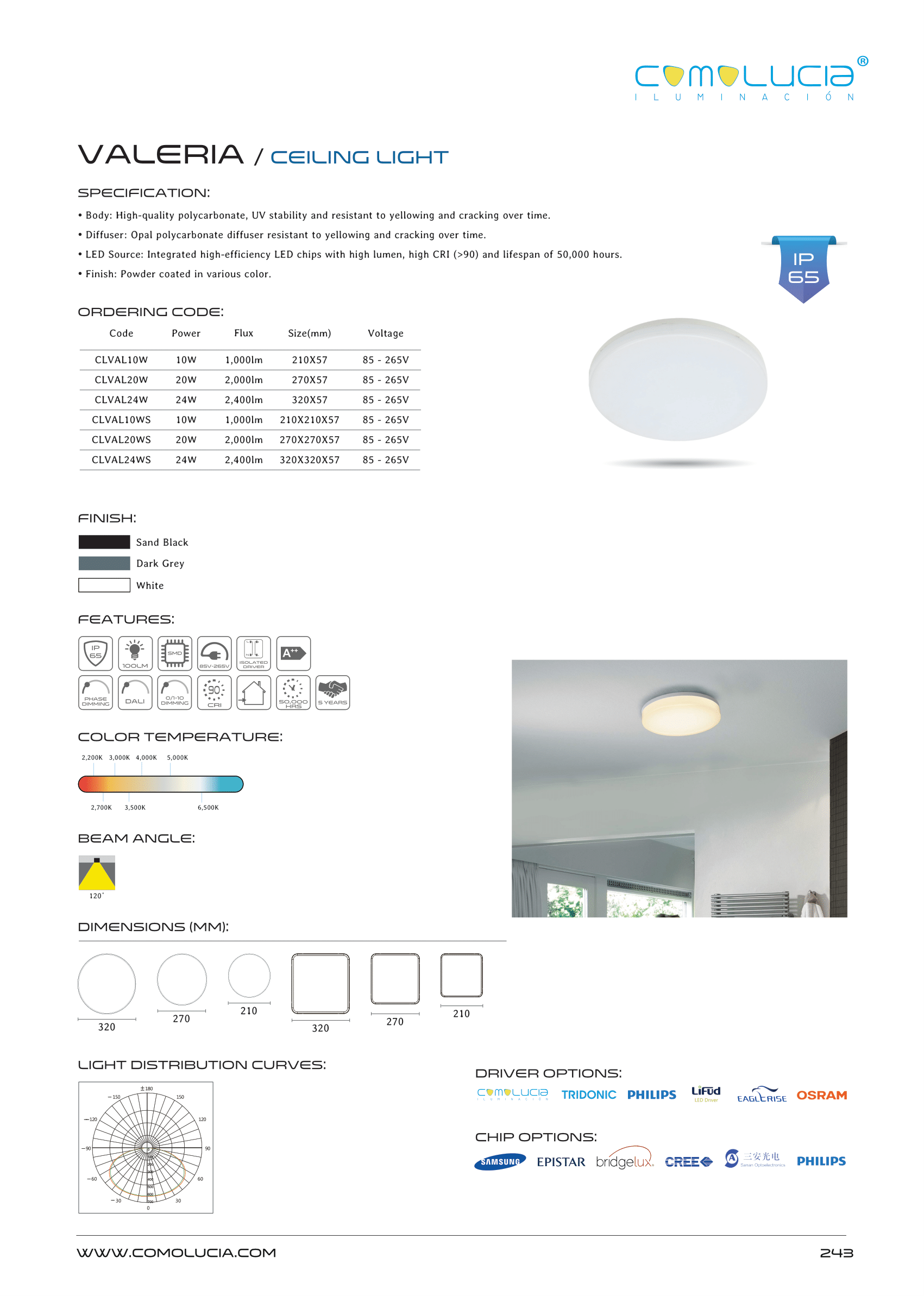 - LED Source: Integrated high-efficiency LED chips with high lumen, high CRI (>90) and lifespan of 50,000 hours.