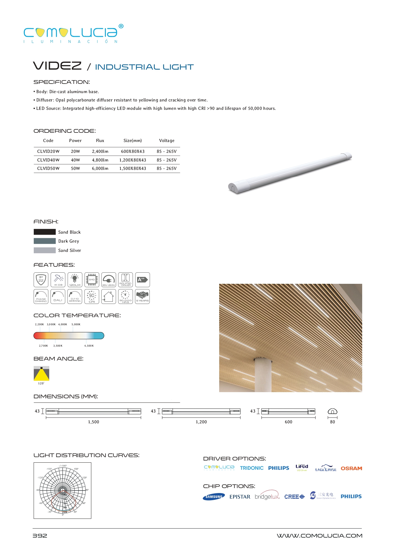 - LED Source: Integrated high-efficiency LED module with high lumen with high CRI >90 and lifespan of 50,000 hours.