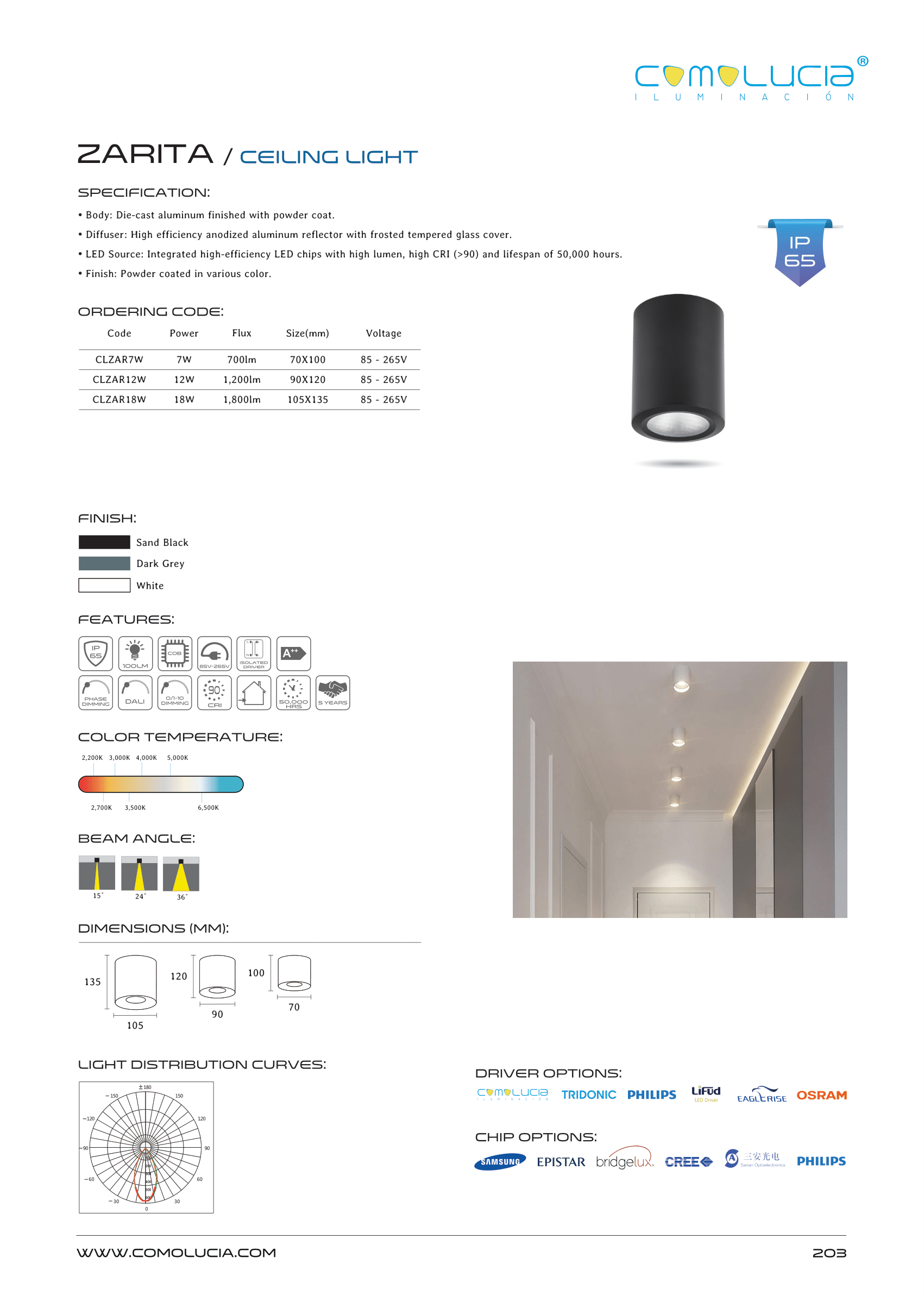 - LED Source: Integrated high-efficiency LED chips with high lumen, high CRI (>90) and lifespan of 50,000 hours.